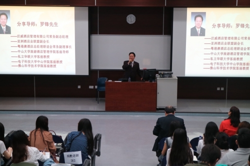 酒店與旅遊管理學院大師系列講座於2016年4月25日邀請了漢威酒店管理有限公司常務副總經理羅鋒先生前來,為酒店與旅遊管理學院開講,主題為 “現代酒店人才管理的趨勢與特點”。