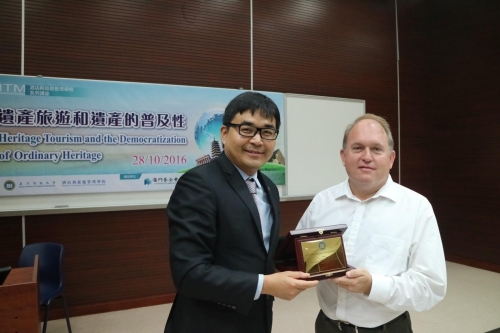 2016年10月28日澳門科技大學酒店與旅遊管理學院系列講座邀請到美國亞利桑那州立大學的Dallen J. Timothy教授,為酒店與旅遊管理學院主講“遺產旅遊和遺產的普及性”,該教授也是國際遺產旅遊雜誌的主編,講座由澳門基金會贊助。