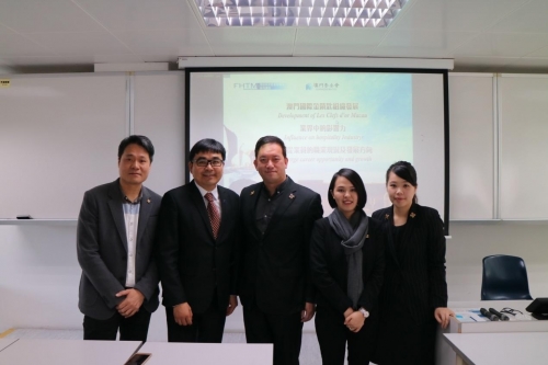2016年12月9日,澳門金鎖匙組織的Mr. Sammy Chan, Mr. Julian Ieong 四位代表到訪酒店與旅遊管理學院,為酒店與旅遊管理學院的博士及碩士研究生帶來了以“澳門國際金鎖匙發展”“業界中的影響力”“禮賓從業員的職業現狀及發展方向”為主題的講座。