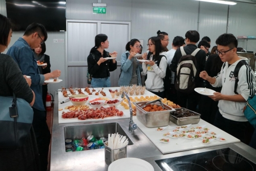 講座結束後,到訪嘉賓及參與講座的全體同學一同前往酒店與旅遊管理學院廚藝學實驗室參觀,並享用由餐飲管理學士課程同學親手準備的食物。酒旅研究生同學們表示參加這樣的活動非常有意義,一方面能對金鎖匙組織有進一步的了解,另一方面可與本科同學有互動機會,了解他們學習成果。