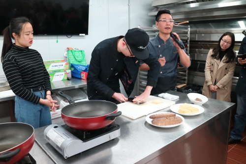 整場講座中,陳大廚熱情的為學生們講解了中國淮揚菜的特點,通過認真仔細的示範並邀請兩名同學上臺互動學習,讓學生們深深感受到了米芝蓮大廚的專業技能以及烹飪理念。