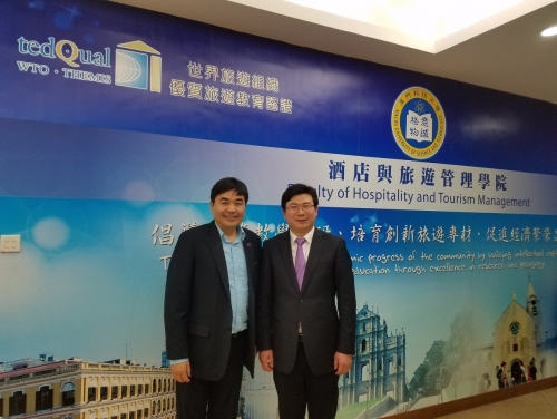 四月七日,常州市旅遊局局長喬俊傑先生帶領常州電視台記者一行來訪我院,與酒店與旅遊管理學院謝飛帆院長親切交談。自去年10月陪同常州市副市長方國強訪問我校以來,此行已是喬局長第三次親自來訪。喬局長對我院在學科建設、師資管理和學生培養方面都給予了高度評價,並希望我院能與常州的高校進行多方面的合作,為常州在旅遊方面的發展輸送更多優秀的人才。他也表示,常州市旅遊局會在雙方的合作中發揮好橋樑與平台的作用,使合作能落到實處。常州電視台此次特地選擇了澳科大作為《雙城記》的紀錄片基地之一,採訪了在科大任教的老師和就讀的常州籍學生,旨在進一步加深大學和坐落在常州的蘇澳產業園的聯繫。謝院長對來訪一行表示熱烈歡迎,並期盼雙方的合作能逐步深化。