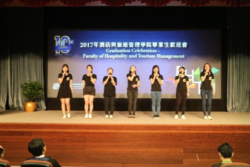2017年6月10日下午,酒店與旅遊管理學院為2017屆酒旅畢業生在D座舉行了畢業歡送會,並於A座準備了招待會款待畢業生及其家長。酒店與旅遊管理學院教職員、畢業生及家長約200人出席了本次歡送會。學生會的7位同學獻上歌曲“啟程”,祝福畢業生前程似錦。隨後院長謝飛帆教授在歡送會上發表了講話並為畢業生送上美好的祝福。酒店與旅遊管理學院的張萌老師,唐娟老師及陳妤婕老師分別發表演講,三位老師通過講述了自己的求學及教課歷程,鼓勵畢業生在未來的道路上保持對事業的熱情和堅持不懈地追求自己夢想。畢業生代表王媚婷最後獻上致辭。