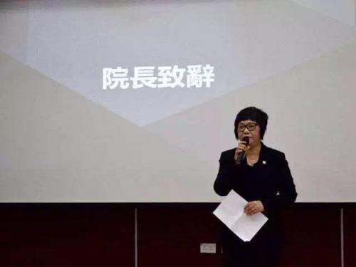 酒旅學院副院長(行政)朱愛微女士上臺致辭,殷切的話語表達了她對蒞臨現場各位評委包括黃穎祚課程主任,馮艷課程主任,郭詠倡老師及現場觀眾們的歡迎,鼓勵每組選手力爭佳績。