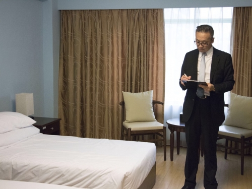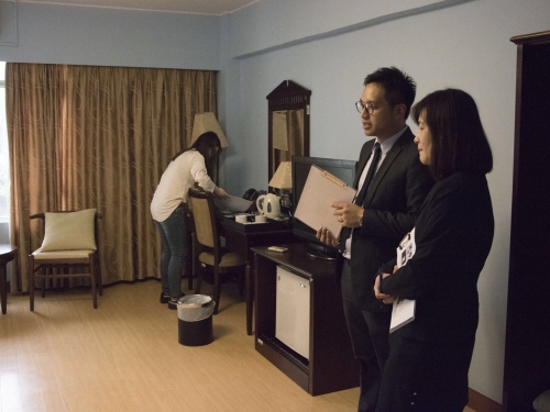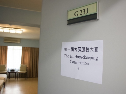 為提高酒店與旅遊管理學院學生的專業知識和技能,2018年4月25日,酒旅學院學生會舉辦了客房服務大賽決賽。4月25日下午,客房服務大賽在訪客宿舍拉開了序幕。爲慶祝澳門科技大學成立十八週年,活動分別邀請了來自澳門銀河管家及環境衛生助理副總裁陳淑儀小姐及永利澳門客房部總監熊國偉先生、酒旅學院的副院長(行政)朱愛微女士、課程主任黃穎祚老師、課程主任楊潔雲老師、黃麗芬老師等前來出席本次比賽參與指導和給予意見,共同檢驗參賽選手的專業技能。
