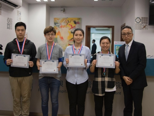 酒旅學院副院長(行政)朱愛微女士上臺致辭,殷切的話語表達了她對蒞臨現場各位來賓和參賽選手的歡迎,鼓勵每位選手力爭佳績。在簡單回顧初賽後,比賽正式開始。比賽分爲兩個環節,由初賽決出的20位參賽選手抽籤決定參賽組別和順序,五組分別展示專業技能後決出最佳小組。然後最佳小組的四位成員再次比拼選出最佳個人表現獎。兩輪比賽不僅考驗團隊策略以及組員間的配合程度,而且也是一場專業知識的激烈比拼。小組各展風采,實力不相上下。緊張而激烈的比賽過後,由林修言、繆榮欽、陳偉榮和莢鑫小組獲得了最佳小組的稱號,陳偉榮獲得了最佳個人的稱號。客房服務大賽在頒獎後落下帷幕。