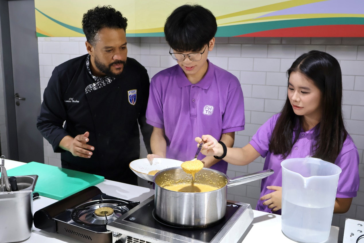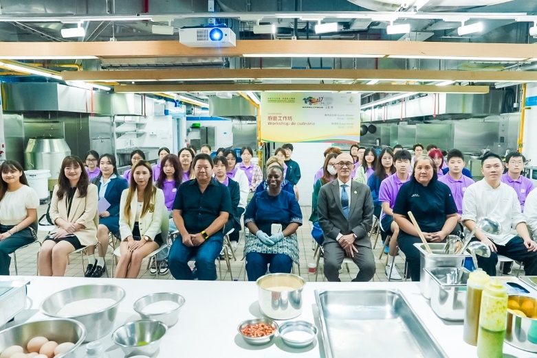 Aimed at giving full play to the important role of Macao as a platform between China and Portuguese-speaking Countries, and further promoting multicultural exchange and people-to-people bonds between China and Portuguese-speaking Countries, the Faculty of Hospitality and Tourism Management (FHTM) and Permanent Secretariat of the Forum for Economic and Trade Co-operation between China and Portuguese-speaking Countries (Macao) held the Two Sessions of “17th Cultural Week of China and Portuguese-Speaking Countries Culinary Workshop” – Demonstration of Angolan Cuisine and Cape Verde Cuisine on September 30th, 2025. Guinea-Bissau chef Lassiatu Bana Djalo Balde and Cape Verde chef Lamine Mascarenhas Medina were invited to share their industry experiences and demonstrate culinary skills. The events attracted over 80 FHTM students.