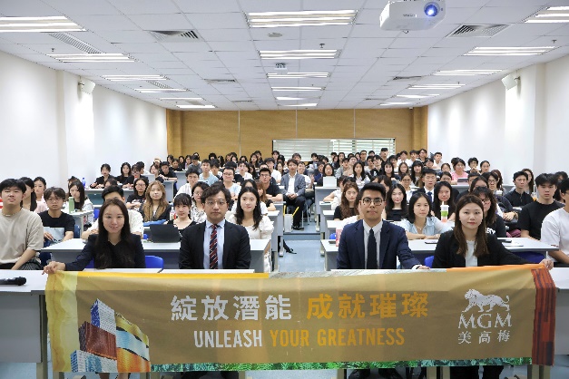 The Faculty has invited MGM Macau, Wynn Resorts (Macau) Limited, Sands China Ltd., Galaxy Entertainment Group, Sofitel Macau at Ponte 16, SJM Resorts, S.A., Melco Resorts & Entertainment, W Macau - Studio City, Mandarin Oriental, Macau, Crowne Plaza Macau, Holiday Inn Express Macau, DOC DMC Macau Ltd., smallWORLD Entertainment Ltd., Huamei Consulting, and MGM Reserve Zhuhai (listed in no particular order) to the talks, organized by Dr. Christy Liu, Program Director of FHTM. During the talks, the companies provided detailed insights into their backgrounds, development histories, and internship opportunities. Following the presentations, students actively submitted their resumes and engaged in in-depth discussions with company representatives. The atmosphere was vibrant and enthusiastic, reflecting a strong interest from the students.