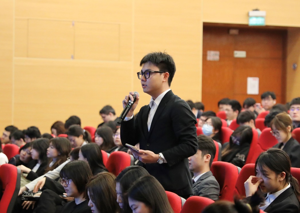在問答環節中,同學們積極參與,踴躍提問。洪于徳先生非常耐心友善地逐一為同學們解惑,並結合自身豐富的行業實戰案例生動講解,現場互動氛圍相當活絡。透過此次講座,同學們全面掌握研學旅遊與賽事活動的內在聯繫、策劃要點與產業價值,加深了對澳門非博彩旅遊發展的理解,增強了對未來職業發展的信心,為即將踏上的職場征程奠定了堅實的基礎。