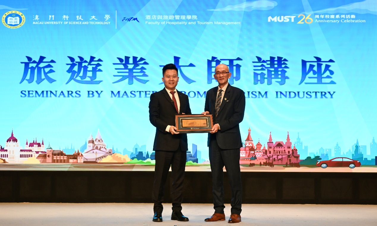 为庆祝澳门科技大学26周年校庆,澳门科技大学酒店与旅游管理学院于2026年4月10日于D座礼堂举办第四场「旅游业大师讲座」。酒店高参及酒店资产高参创始人兼CEO罗家福先生主讲题为《酒店新一轮周期,酒店资产管理趋势》的讲座。酒旅学院吴国民院长、黄颖祚助理院长、冯艳课程主任、潘思颖课程主任及师生约400人出席了活动。