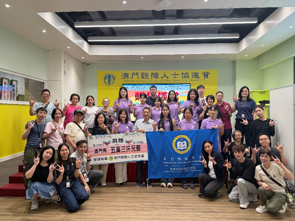本次活動於2026年4月21日由楊潔雲老師帶領酒旅學生會,以及此次參與愛心義賣的各組代表,將獲利所得全數捐獻給澳門聽障人士協進會,為本次活動畫上完美句點。本次參賽的學生深感能為社區關懷盡一份心力是一件極有意義的事,也希望未來學院能持續舉辦這類的活動,將學生們的愛心及善舉拓展到各多需要關懷的人群中。